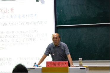“真正的立法者”讲座中,史彤彪教授运用大量案例分析了理性在立法中的重要作用,并对柏拉图、西塞罗、阿奎纳等九位西方著名思想家的立法思想进行了精要分析。在“被法律人误读的七个常识”讲座中,史彤彪教授通过对原典、人物的生平和创作背景等因素的考察,分析了“人治”“人生而自由,却无往不在枷锁中”等概念、名言名句的真实意涵。