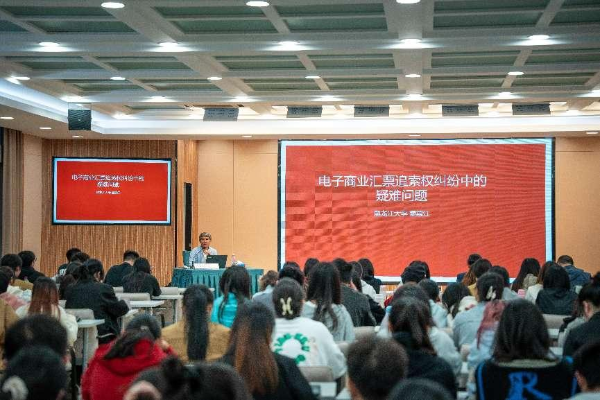 本网讯(记者 张魏 朱宇/文 黄卓然/图)4月11日,票据实务中的热点问题解读讲座在德智楼的远程教学观摩室举行,黑龙江大学法学院二级教授、博士生导师董惠江主讲。法学院教师及百余位本科生和研究生参加了讲座。讲座由法学院杨信教授主持。