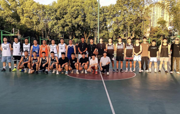 与外国语学院篮球队合影