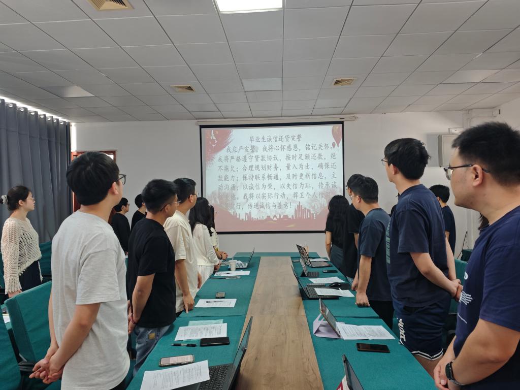 谢学婧老师开展了2025年毕业生国家助学贷款还款确认工作的专题培训,她组织贷款毕业生集中学习生源地信用助学贷款还款流程、如何填写“生源地信用助学贷款还款确认书”、完成网上毕业确认申请步骤以及线下现场毕业确认须知。她重点结合时间节点对国家助学贷款的三种还款方式--提前、正常和逾期进行了详细说明,以支付宝、云闪付应用为例讲解了还款的具体操作及其注意事项,确保学生对毕业确认和按时还款工作应知应会。然后,李勇老师以“诚载未来,信筑前程”为题,为学生讲解了征信知识、预防金融诈骗和反洗钱等方面的知识,指出作为法学生要知法守法,及时履行助学贷款还款义务。接着,参会师生共同观看征信反诈视频,识破“征信修复”骗局,增强征信爱护意识。最后,全体参会毕业生进行《毕业生诚信还贷公约》宣誓,强化还款责任意识,促进毕业生之间的相互监督与激励,营造诚信氛围。
