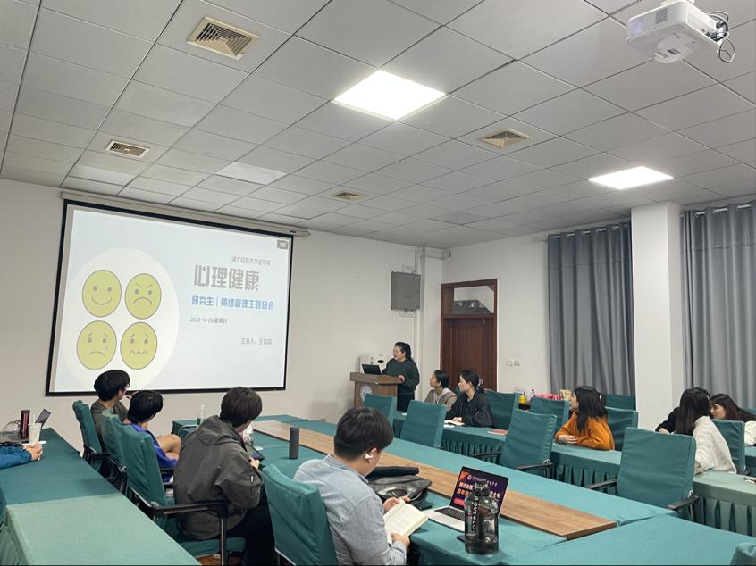 本网讯(记者 严冲 邬林峰 朱宇/文 朱宇/图)10月29日,3044am永利集团3044noc法学院 “研究生心理健康主题班会”在德智楼9B314教室举行,班会由学院研究生辅导员王晶晶老师主持,法学院全体在校研究生参加了此次班会。