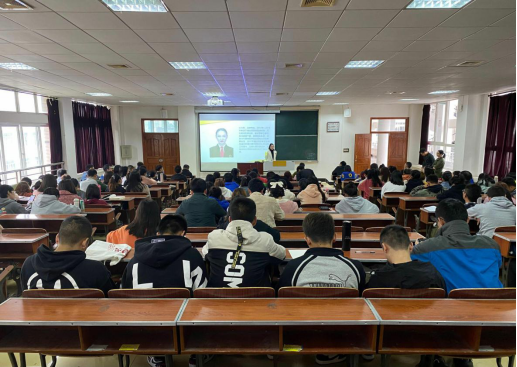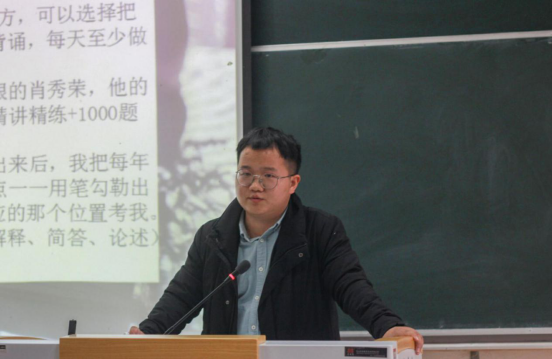 周海涛以自己的基层工作经历为切入点勉励在场学生要有坚定的理想信念坚持自己喜欢的事情,树立明确目标找准个人定位。他告诫在场学生要认真备考,扎实准备笔试面试了解流程,有备无患。