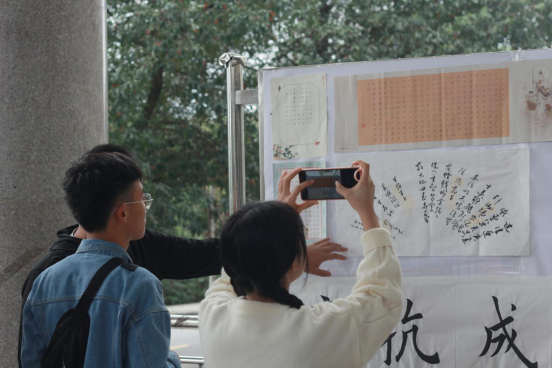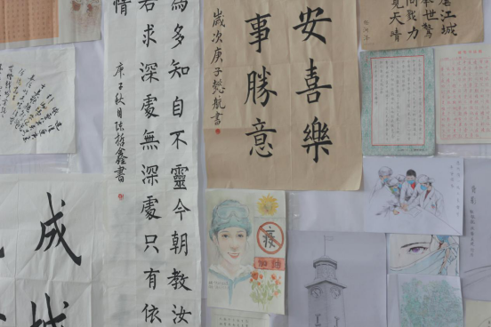 本网讯(记者 万听听 见习记者 户晴 向甜娥/文 朱子真 李经玺/图)为致敬抗疫英雄,增强同学们的爱国情怀,我院举办“致敬英雄 共克时艰”迎新书画赛,10月18日,我院学生会宣传与语言文字工作部于德智楼一楼开展迎新书画赛获奖作品展。
