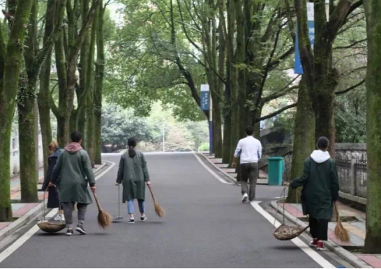 漫步校园,你总会见着许多穿绿色大褂的同学打扫着校道,你不禁奇怪,到了大学还要清扫校园卫生,要说咱们学校独创的劳动周可让每一个民大学子深有感触,难起的早床、躲避骑着单车的王老师,前一秒的你还在感叹落叶的美,待到下一秒开始清洁时却时常抱怨。一想到要与这所校园告别,那些曾经抱怨的日子,也早已是回不去的青春。
