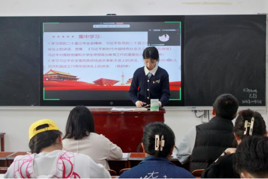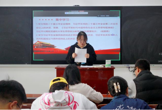 理论研学部分由胡美艳同志领学党的二十届三中全会精神、习近平在党的二十届三中全会第二次全体会议上的讲话、党章、《习近平新时代中国特色社会主义思想专题摘编》、习近平对高校党建和大学生思想政治教育工作的重要批示,杨舒婷同志领学习近平在全国民族团结进步表彰大会上的讲话、习近平在庆祝中华人民共和国成立75周年招待会上的讲话,罗金顺同志领学《中华人民共和国爱国主义教育法》《中华人民共和国国防教育法》,最后支部安排了恩施州委宣传部、组织部、州委理论信息中心印发的“支部主题党日”学习资料(第十期)等自主学习内容