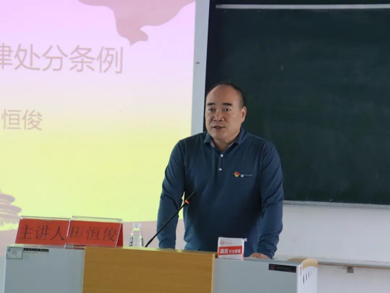 田恒俊书记向在座学生提出希望和要求,他指出“法律是每位公民的底线,作为一名党员,应该发挥带头作用,发挥党员的先锋模范作用,带领人民遵守法律法规。”