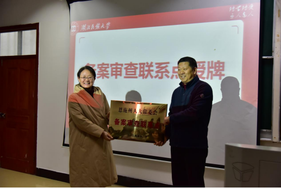 会上,全体成员共同观看宪法宣传片《“大家”说宪法》,举行了备案审查联系点授牌仪式,恩施州人大法制委员会主任委员、常委会法制工作委员会主任吴以忠向恩施州立法研究与人才培养基地颁发牌匾,基地负责人汪燕代表基地接牌。最后,罗翔宇副部长宣布本次“宪法宣传周”正式开幕。