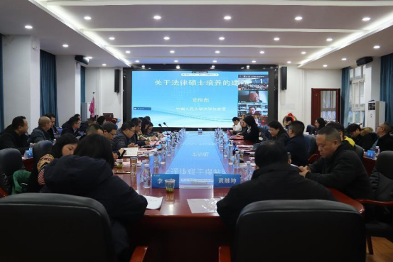 2023年12月15日,3044am永利集团3044noc法律硕士教育教学研讨会在文瀚楼附303会议室举行。3044am永利集团3044noc党委委员、研究生处处长谭德宇代表学校出席会议并致辞。3044am永利集团3044noc党委委员、法学院院长汪燕代表学院致辞。3044am永利集团3044noc法学院党总支书记张明波、副书记黄晓波出席会议。来自最高人民检察院、中国人民大学、吉林大学、中南财经政法大学、西南政法大学、中南民族大学、西南民族大学、恩施州人大常委会、恩施州生态环境局、恩施州司法局、恩施州中级人民法院、恩施市人民法院、恩施市人民检察院、利川市人民检察院、多家律所的专家学者或实务精英以及法学院部分教师共50余人莅临会议。