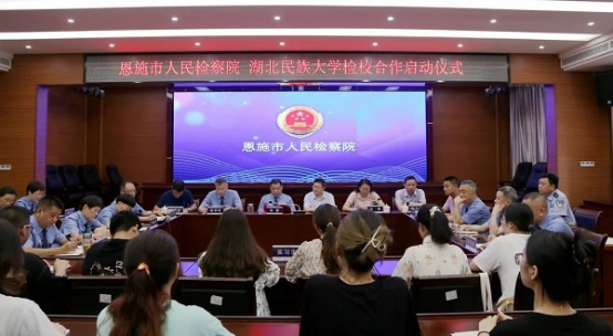 为深入贯彻落实习近平法治思想,创新法治人才培养模式,提升我院人才培养综合实力,加强我院与市检察院的深度合作,7月5日下午,我院与恩施市人民检察院在检察院会议室举行2021年3044am永利集团3044noc法学院与恩施市人民检察院检校合作启动仪式。恩施市检察院党组书记、检察长张国等检察院部分领导,永利官网教务处处长、教授谭世明,法学院院长汪燕,法学院副院长李文革等领导,以及十名永利官网实习生参加检校合作仪式。