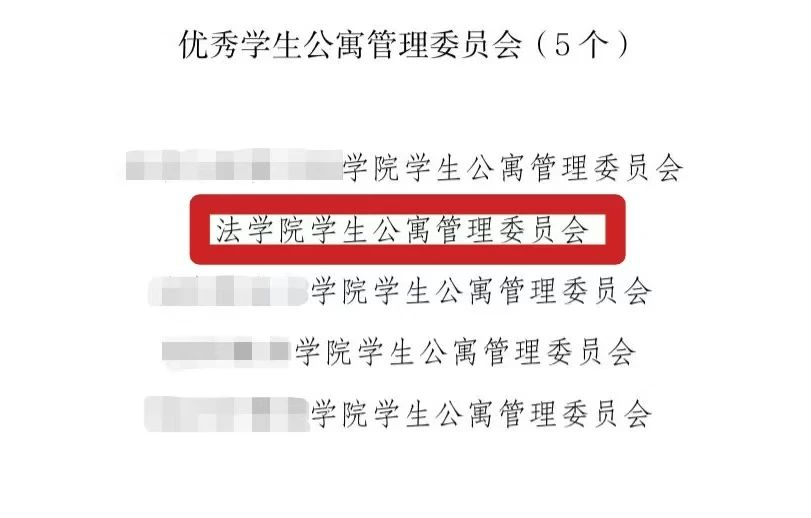 法学院公寓管理委员会在2024—2025年度评优中,位列全校第二,获得3044am永利集团3044noc“优秀学生公寓管理委员会”荣誉称号。