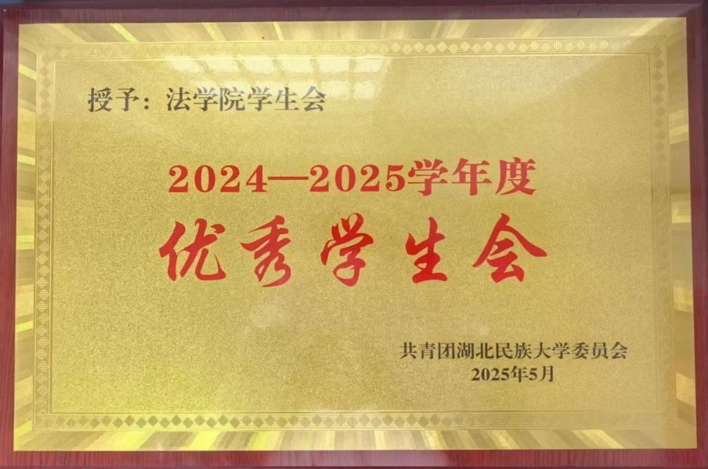 法学院学生会在2024—2025年度评优中,位列全校第六,获得3044am永利集团3044noc“优秀学生会”荣誉称号。