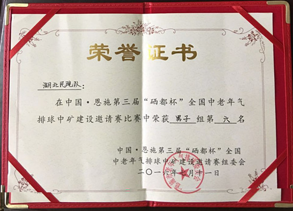 永利官网气排球队在中国·恩施第三届“硒都杯”全国中老年气排球中矿建设邀请赛中荣获男子组第六名。