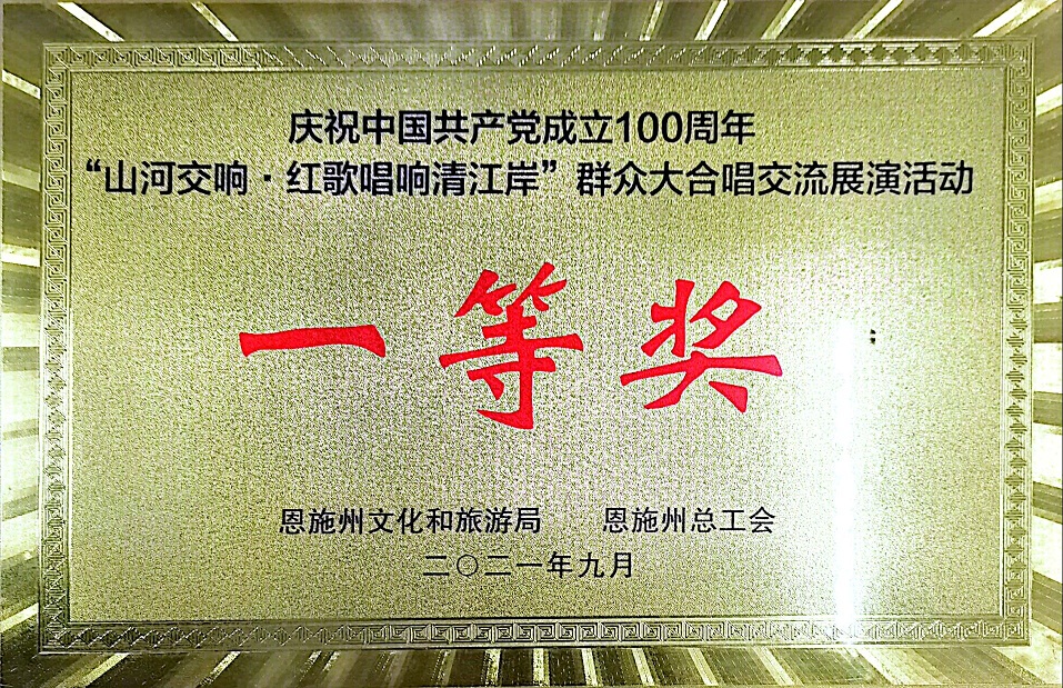 永利官网参加恩施州总工会恩施州文旅局主办“山河交响·红歌唱响清江岸”群众大合唱交流展演活动获一等奖