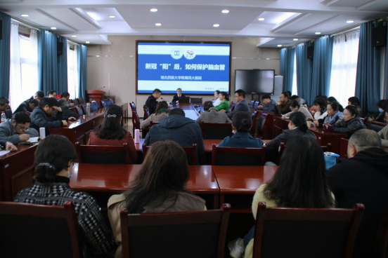 瞿昌华主任以“新冠‘阳’后如何保护脑血管?”为主题进行专题讲座。他从脑血管疾病的概念特点、识别脑血管疾病的方法、家庭急救方法及最新治疗手段四个方面介绍如何保护脑血管。结合真实病例为教职工科普脑卒中的急救知识,通俗易懂,生动实用。