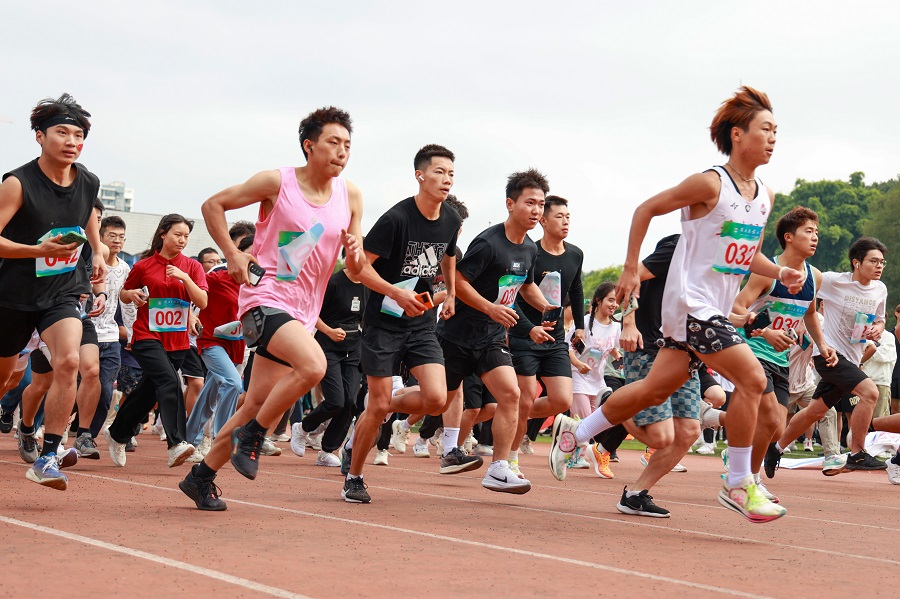 活动中,参赛人员以民族体育场为起点,途经西苑餐厅、图书馆、大学生广场、团结广场、修远楼、新校区医学实训中心及工程中心,最终经小球馆返回民族体育场,全程约5公里。发令枪响,竞技组和教工组的运动员们奋勇争先,朝着终点的方向努力奔跑。教工组、体验组有序紧随其后,分批起跑,旗手们用力挥舞着旗帜,展示着他们蓬勃的朝气。路线中途设有补给点与医疗点,路线转折点安排工作人员与志愿者为参赛人员指引路线。