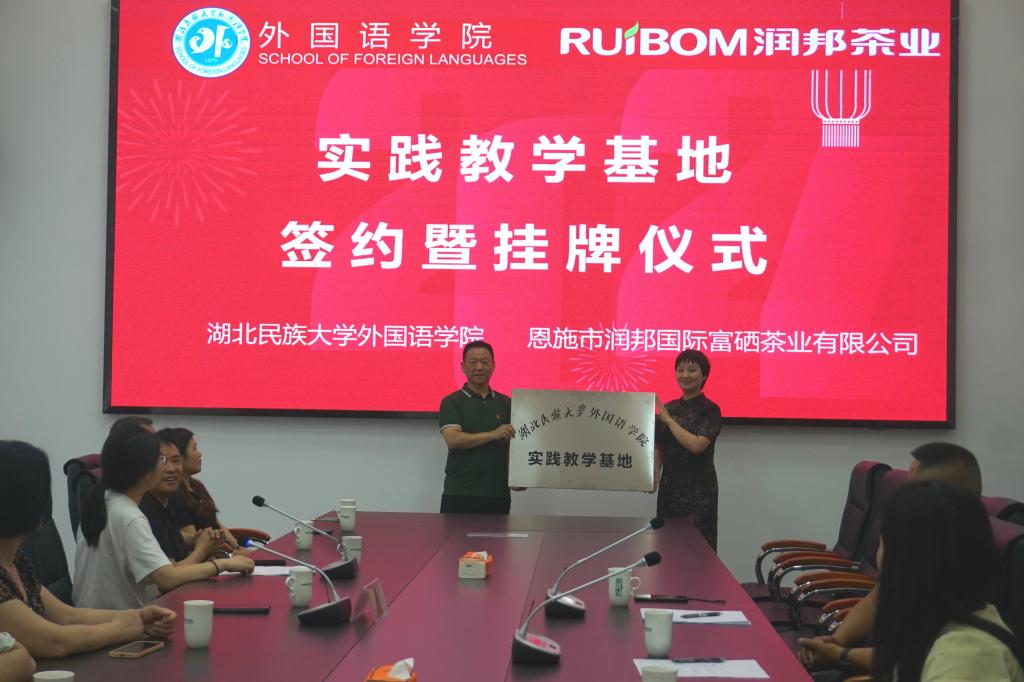 6月24日,在外国语学院分工会主席罗成富的带领下,外国语学院第三工会小组组织商务英语系全体教职工前往恩施市芭蕉侗族乡,与恩施市润邦国际富硒茶叶有限公司代表进行交流,并签订了校企合作协议。