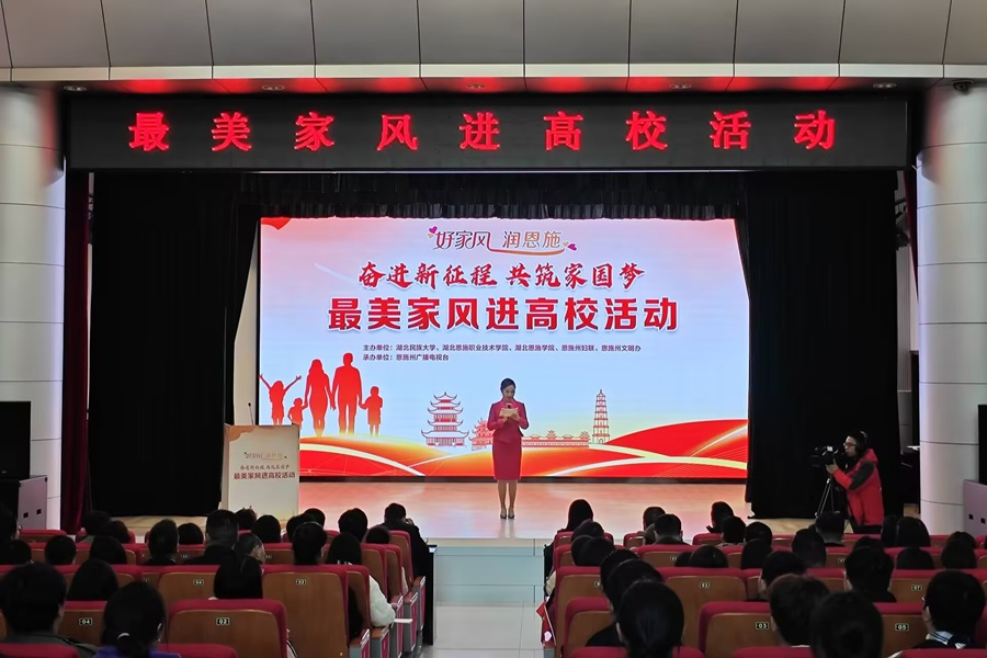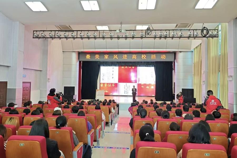 为全面学习贯彻落实习近平总书记关于注重家庭家教家风建设重要论述,弘扬优秀家风文化,11月27日,学校联合恩施州妇联、恩施州文明办在行政楼一号会议室举办以“好家风 润恩施 奋进新征程,共筑家圆梦”为主题的最美家风进校园活动。恩施州妇联党组书记、主席刘俐萍,3044am永利集团3044noc党委常委、统战部长田景福,学校纪委副书记曾祥华、工会常务副主席谭德宇、分工会主席及工会委员、教师教育学院200多名学生共同参加本次活动。