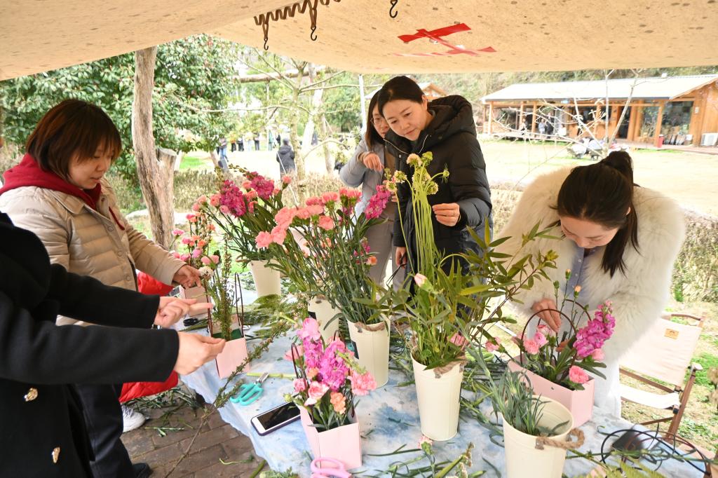 另一部分老师则沉浸在插花艺术的海洋中,学习花材选择、色彩搭配、造型设计等技巧,用灵巧的双手将一朵朵鲜花变成精美的艺术品,感受着生活的美好和艺术的魅力。