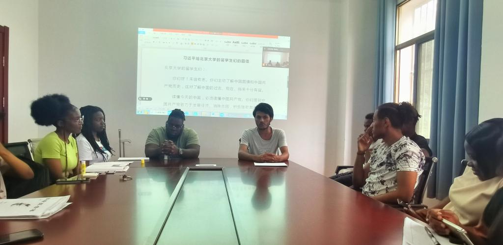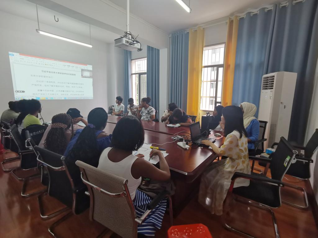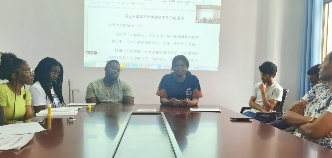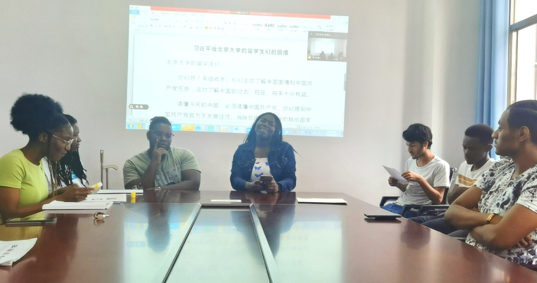 组织国际学生学习习总书记给国际学生的两封回信也是国际交流合作处支部7月支部主题党日特色实践活动。庆祝建党100周年之际,传达习总书记对国际学生的关怀,让学生深入了解中国,了解中国共产党,培养学生“知华、友华、爱华”的情怀,引导学生讲好中国故事。