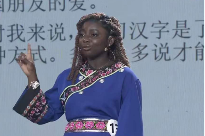 永利官网赞比亚籍留学生华艺以《美丽湖北,魅力恩施》为题介绍了恩施的风土人情与日常生活。在她眼中,土家族文化绚丽多姿,极具魅力。她大方地向现场评委和观众展示了她身穿的土家族服饰,并跳起了土家摆手舞。华艺获得优秀奖。