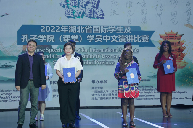 8月12日下午,由湖北省教育国际交流协会、湖北省人民对外友好协会主办的“2022年湖北省国际学生及孔子学院(课堂)学员中文演讲比赛(决赛)”在湖北广播电视台举行。永利官网参赛的两名国际学生表现优异,获得三等奖、最佳才艺奖、优秀奖,国际教育学院陈春红老师获得“优秀指导教师”称号。