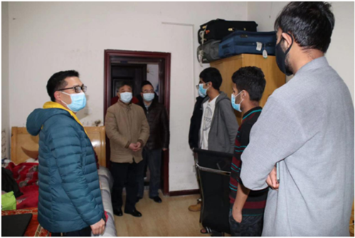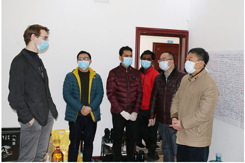 2月3日下午,校长顿祖义带领学校后勤集团、国际教育学院的负责人及部分老师走访慰问寒假留校的留学生和外籍教师,并指导新型冠状病毒引起的肺炎疫情防控工作。