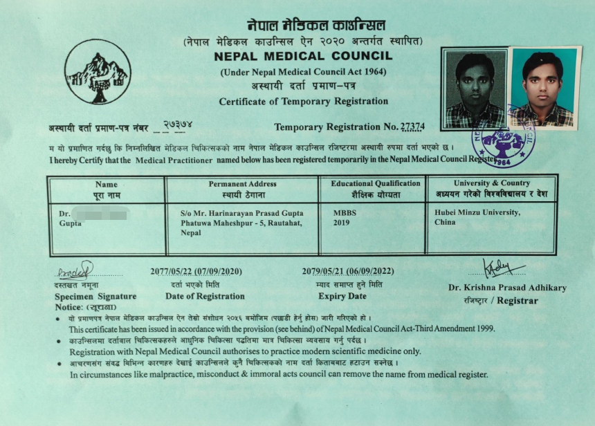 永利官网2013级临床医学专业尼泊尔留学生于2019年7月毕业回国后参加了所在国的执业医师资格考试,取得了优异成绩。至今,永利官网已有33人通过了尼泊尔医学委员会( Nepal Medical Council ( NMC ))举办的国家医师资格考试并成为尼泊尔国家注册医师。