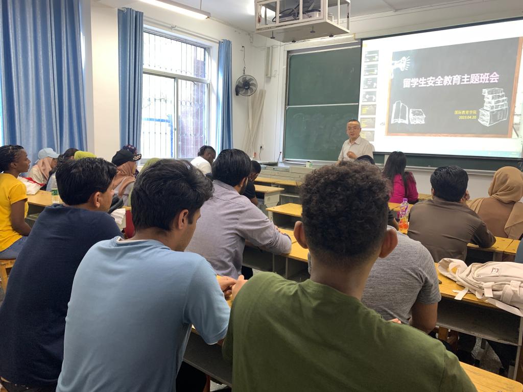 为更好地保障在校留学生的健康和安全,提高留学生安全防范能力、增强留学生安全防范意识,4月20日下午,国际教育学院在6102教室开展留学生安全教育主题班会,全体在校留学生参加了此次班会。