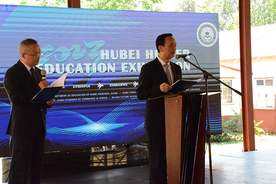 向前进(右)在津巴布韦教育展开幕式上致辞