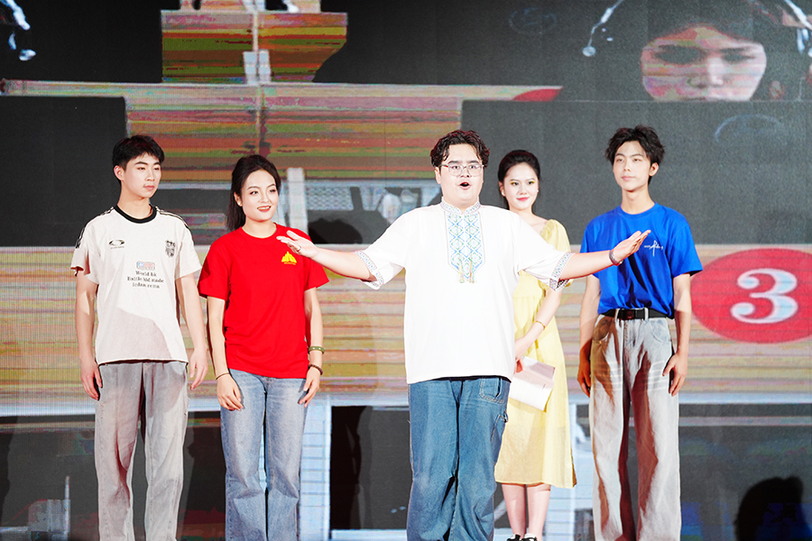 《共同语 共同体》由学校党委统战部联合党委宣传部、教师教育学院、文学与传媒学院等共同打造,法学院、音乐舞蹈学院、民族学与社会学学院、林学园艺学院等单位师生参加演出。该剧以校园情景剧为表现载体,紧扣铸牢中华民族共同体意识主线,讲述了来自新疆的学生帕尔哈提·穆沙,在老师和同学的热心帮助下,努力学好国家通用语言文字,毕业后回到家乡助力乡村振兴的故事。灵动活泼的情节设置,青春洋溢的表演形式,精巧设计的故事冲突,展示了新时代大学校园各民族学子共居共学共乐、交往交流交融的点点滴滴和感人瞬间,诠释了国家通用语言文字在深化民族交往交流交融、促进民族团结中的重要作用。