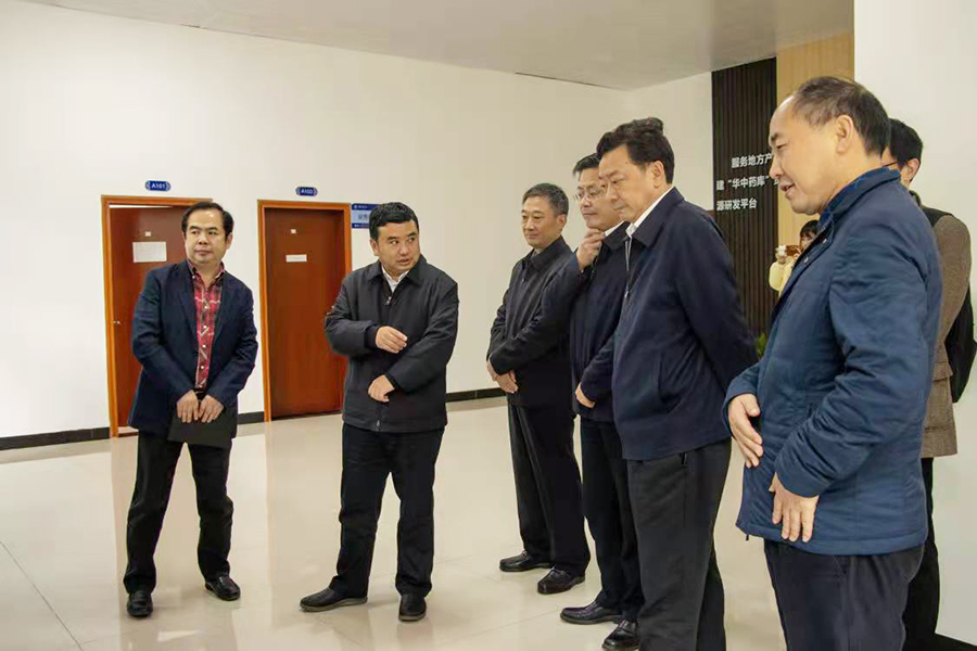 刘建平一行首先考察了武陵山中药材检验检测中心。中心负责人分别从中心建设背景、功能布局、建设进度和下一步重点工作等方面作了介绍。