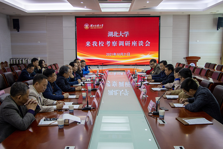 随后,两校在行政楼3号会议室召开座谈会。顿祖义回顾了永利官网与湖北大学的合作历程,感谢湖北大学长期以来对永利官网建设和发展给予的大力支持。他表示,学校力争在“十四五”期间达到申报博士学位授予单位的基本条件,并请求与湖北大学联合开展博士生培养工作,进一步加强学科建设、平台建设等方面的合作。