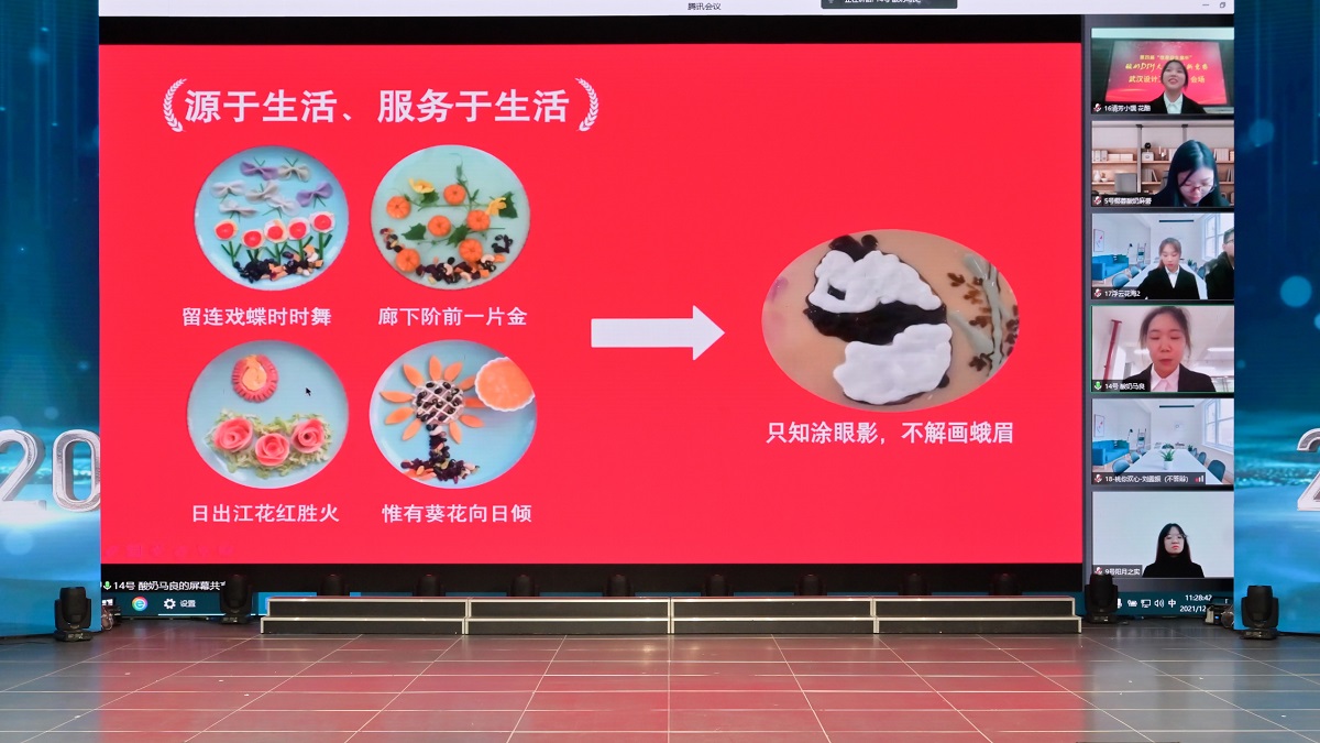 来自永利官网及华中农业大学、武汉轻工大学、武汉设计工程学院、湖北大学知行学院、中南民族大学等13所高校的22支团队同台比拼。最终,来自武汉设计工程学院的第17组作品“浮云花海”荣获一等奖,来自永利官网的第14组作品“酸奶马良趣涂鸦”荣获三等奖。