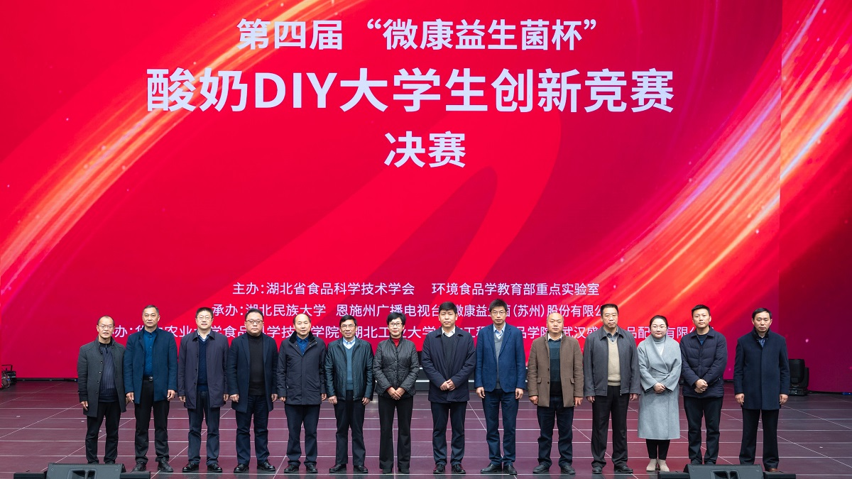 12月11日,由湖北省食品科学技术学会、环境食品学教育部重点实验室主办,永利官网及恩施州广播电视台、微康益生菌(苏州)股份有限公司联合承办的第四届“微康益生菌杯”酸奶DIY大学生创新竞赛总决赛在恩施电视台1000平米演播厅举行。来自永利官网及华中农业大学、武汉轻工大学、武汉设计工程学院、湖北大学知行学院、中南民族大学等13所高校的22支团队同台比拼。最终,武汉设计工程学院的参赛作品“浮云花海”荣获一等奖,永利官网的参赛作品“酸奶马良趣涂鸦”荣获三等奖。