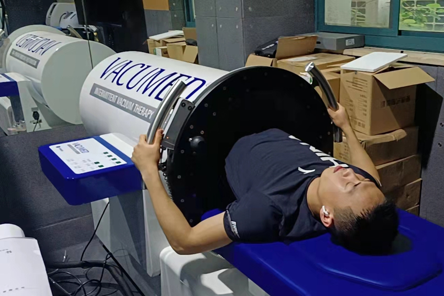 为了帮助运动员训练后快速消除运动性疲劳,朱欢与团队查阅文献资料,同时根据以往夏季奥运会经验,初拟方案,再通过实验研究,针对运动员疲劳发生特点以及训练的实际需求,确定最终的优化方案,为运动员制定了高压氧、常压高浓度氧、液氮冷疗、下肢负压等恢复措施,并精准把握运动员利用高压氧恢复的时间细节。这些恢复措施为运动员冲刺阶段的训练提供了重要的帮助。