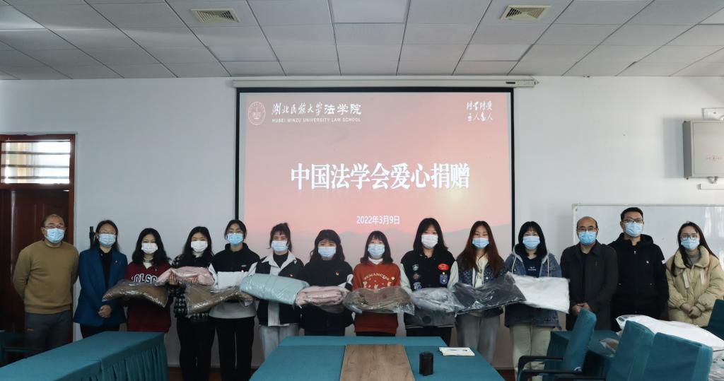 3月9日,法学院举办爱心捐赠仪式,中国法学会向法学院法学专业学生捐赠羽绒服100套。学校校友办公室主任熊彪,法学院党总支书记、院长汪燕出席仪式并为受捐学生代表发放爱心物资。