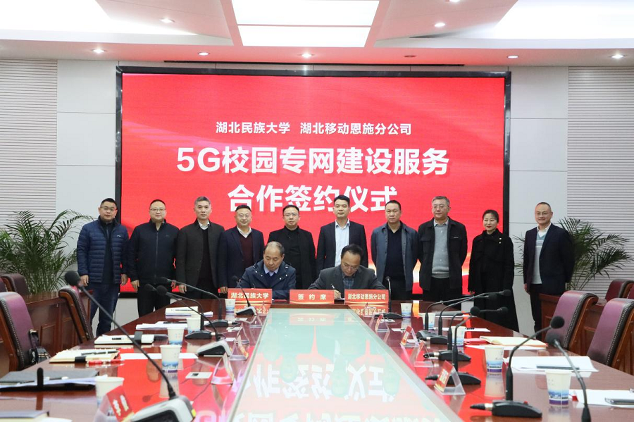 11月28日,永利官网与中国移动恩施分公司5G校园专网建设服务合作协议签约仪式在行政楼3号会议室举行。学校党委常委、副校长李军与中国移动恩施分公司党委书记、总经理谢纪鹏代表双方就永利官网5G 校园专网建设签订合作协议,签约仪式由信息化建设与管理中心主任韩阳主持。