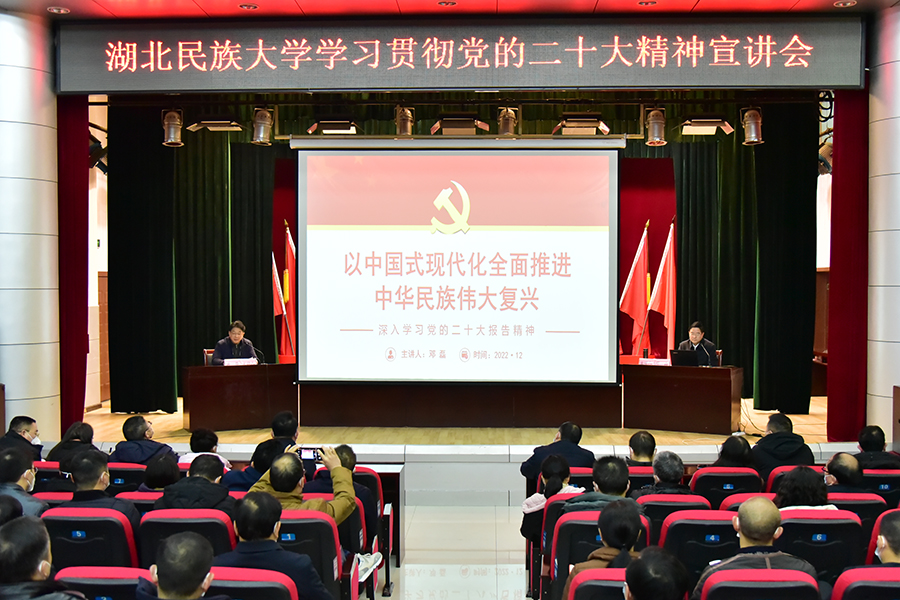 12月9日,3044am永利集团3044noc学习贯彻党的二十大精神首场宣讲会在行政楼一号会议室举行,学校党委副书记邓磊教授以《以中国式现代化全面推进中华民族伟大复兴》为题宣讲了党的二十大精神。