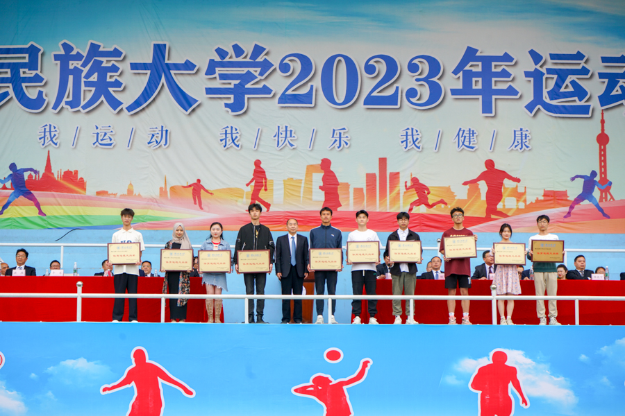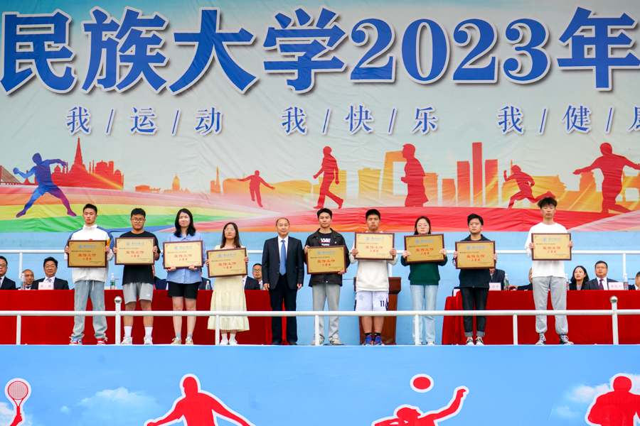 在颁奖仪式后,李军致闭幕辞。他向在本届运动会中取得优异成绩的单位和个人表示热烈祝贺,向参加本届运动会的全体师生表示诚挚谢意,向全体运动员、裁判员及工作人员表示衷心感谢和崇高敬意。他指出,本次运动会全体运动员发扬了“更快、更高、更强、更团结”的奥林匹克精神,充分体现了“弘扬体育精神,践行体育育人”的理念。他希望每位民大学子发扬体育精神,保持良好运动心态,持续加强体育锻炼,成为德、智、体、美、劳全面发展的新时代大学生,为推进学校高质量发展、建设特色鲜明的高水平应用型民族大学做出更大贡献。