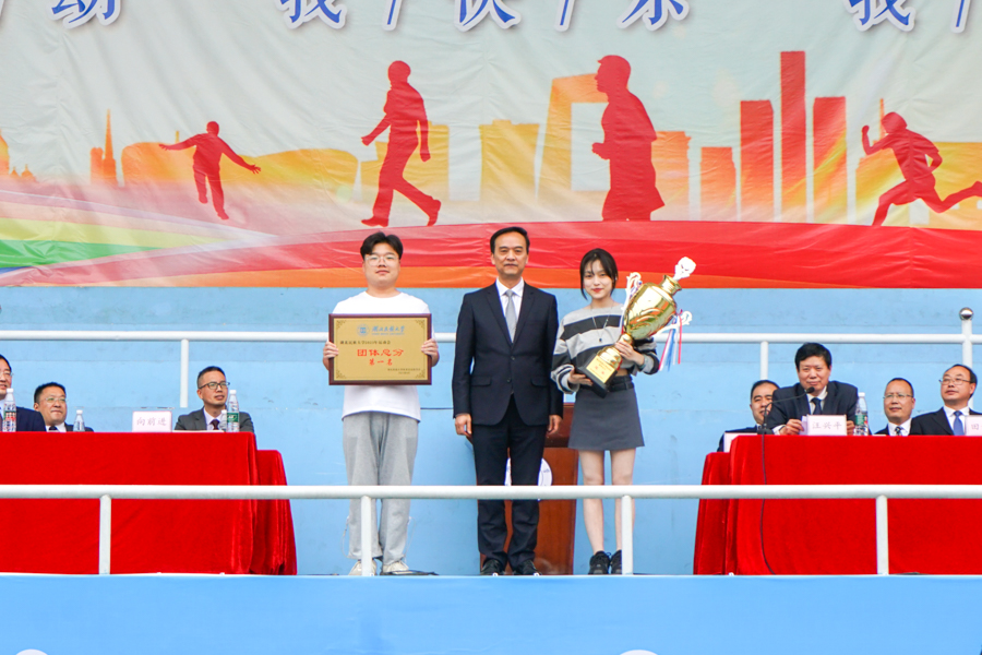 学校党委委员、党委宣传部常务副部长罗翔宇宣布本届运动会宣传工作奖获奖名单。文学与传媒学院荣获宣传工作一等奖,法学院、外国语学院、数学与统计学院获得二等奖,智能科学与工程学院、经济与管理学院、马克思主义学院、生物与食品工程学院、体育学院获得三等奖。