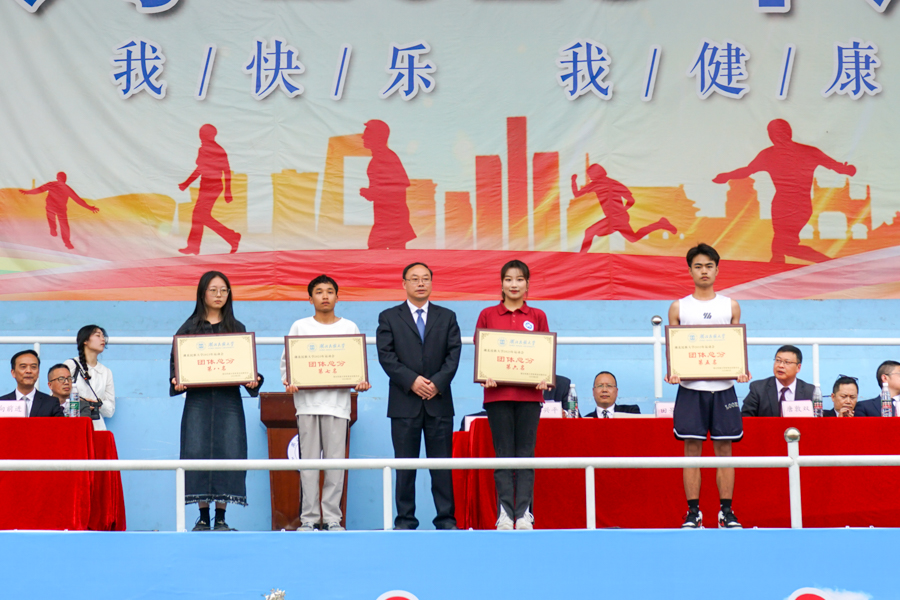 本届运动会副总裁判长、体育学院党总支书记何斌宣布运动会团体总分排名及获得“体育道德风尚奖”的单位。医学部以588分的优异成绩位居团体总分榜首,法学院、智能科学与工程学院、化学与环境工程学院、林学园艺学院、外国语学院、教师教育学院、数学与统计学院分别位列第二至第八名。另外,国际教育学院、美术与设计学院等十个代表队荣获“体育道德风尚奖”。