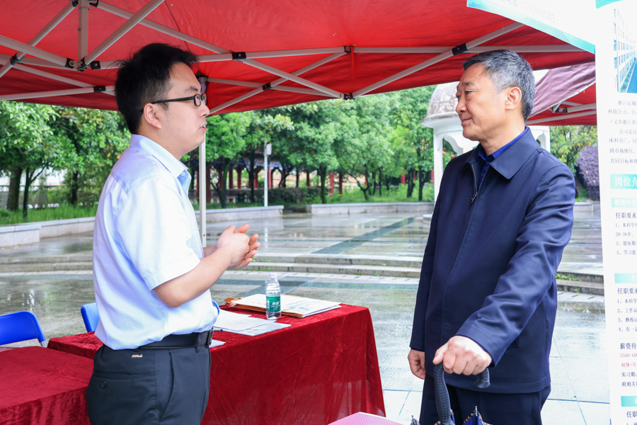 顿祖义在现场详细了解了本次招聘会的开展情况,并分别与多个招聘单位代表及求职学生进行了面对面的交流。他指出,目前大学生就业形势不容乐观,希望学校能够与企业建立更加紧密的合作关系,为更多学生带来就业机会,更好地保障毕业大学生就业。