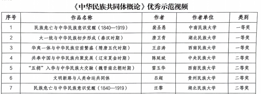 近日,国家民委开展《中华民族共同体概论》优质课程资源征集与评审工作,经初审、复审、终审等环节,共评选出优质资源56个,优秀组织单位5个,3044am永利集团3044noc民族学与社会学学院唐卫青副教授获优秀示范视频一等奖,学校获得教学资源申报优秀组织单位。