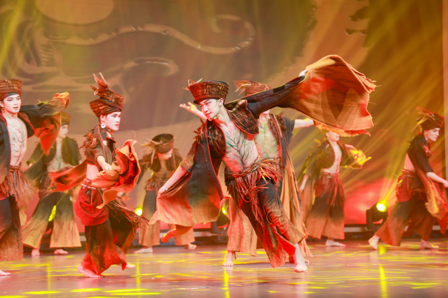 整台晚会精彩纷呈,通过歌、舞、器乐等艺术形式,表达各族师生团结一心、携手向前、共创中华民族美好未来的精气神。晚会在舞蹈《幸福的石榴籽》中拉开序幕,表演者身着民族服饰,伴随悠扬的歌声翩翩起舞,生动呈现出各民族人民如同石榴籽一般紧紧抱在一起。器乐合奏《象王行》融合古筝、二胡和琵琶等多种民族乐器,乐声磅礴壮阔,让人感受到历史的厚重和文化的繁荣。舞蹈《大地之上》采用土家族摆手舞的动律元素,生动表现出土家族人民开垦大地、挥洒汗水、播撒希望的精神面貌。南剧《新时代的追梦人》,以袁辉、容易、黄文秀等新时代模范人物为榜样,激励青年在学习榜样中书写靓丽青春。《民族欢歌》以表演唱的形式呈现出璀璨多样的民族音乐,描绘出中华儿女齐心向党、同谱欢歌、共赴未来的美好画卷。朗诵《石榴花开,籽籽同心》由青马班带队老师邓丽、暑期社会实践“同心石榴”实践团带队老师谭俊妮等师生,用真挚的情感和深情的朗诵,将致力于促进民族团结的个人故事娓娓道来,用情真意切的真实事迹深深感染了观众,赢得了阵阵热烈掌声。最后,歌伴舞《同心共筑中国梦》将晚会气氛推向高潮,表达了中华民族一家亲、同心共筑中国梦的美好祝愿。