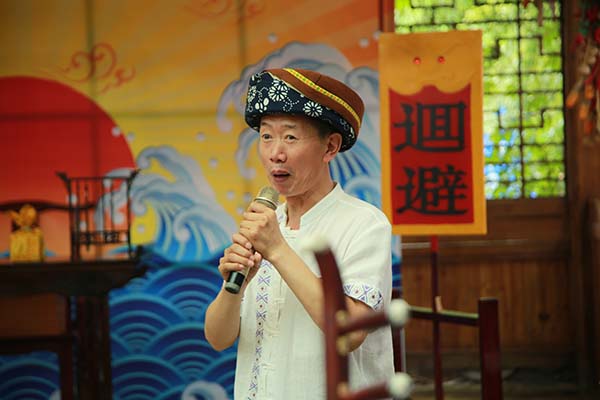 国家非物质文化名录“土家撒叶儿嗬”省级传承人谭学聪展示巴东号子