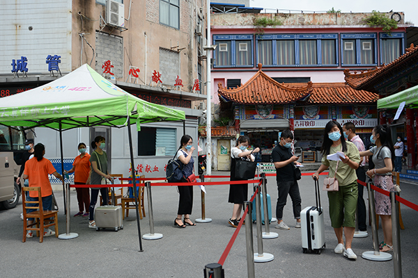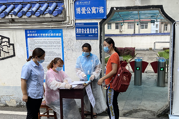 演练对火车站接站、入校、入住公寓、错峰就餐、突发应急处置等场景进行了模拟,分别在火车站接站点、学校大门、各学院(部)报到点、学生公寓、食堂等重点场所进行。演练开始后,参演人员从火车站出发,经过行李消杀、体温测量、身份核验、排队乘车等环节后乘车抵校。随后,按照预定环节和路线进入校门,入住学生公寓,并模拟进入食堂等公共场所,对入校各环节及入校后封闭管理的学生生活服务等工作进行了实地体验,进一步细化了返校学生的饮食安全、住宿保障等具体措施和做法。演练还特意设置了体温异常学生应急处置环节,对可能出现的异常情况事先制定了应对预案和措施。