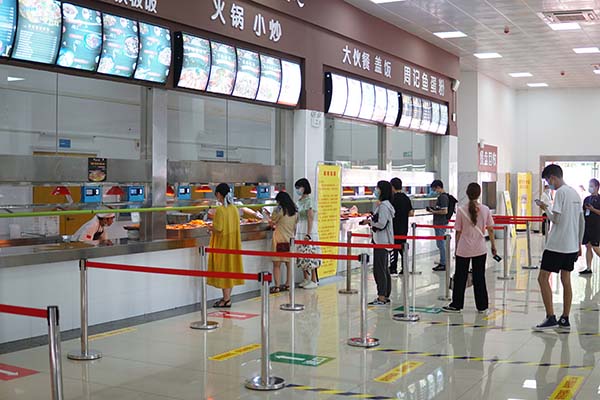 学生在餐厅有序进餐