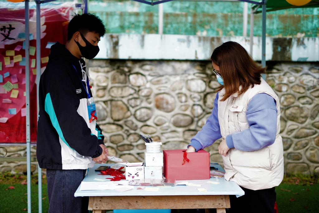 “知识问答”环节,参与者转动转盘选择题目,答对五道即可过关,参与者对答如流,展现其丰富的艾滋病知识储备与反应能力;“野火游戏”环节,参与者通过握手游戏,亲身体验艾滋病毒传播速度,深切体会艾滋病感染者的感受;“合作游戏”环节,参与者两两合作对艾滋病行为进行分类筛选,游戏通过新颖有趣的方式增强参与者对艾滋病的认识;“留言合影”环节,参与者在便利贴上写下祝福语贴在展板上,并进行合影记录,蕴含参与者对艾滋病人的美好祝福与深切关怀。