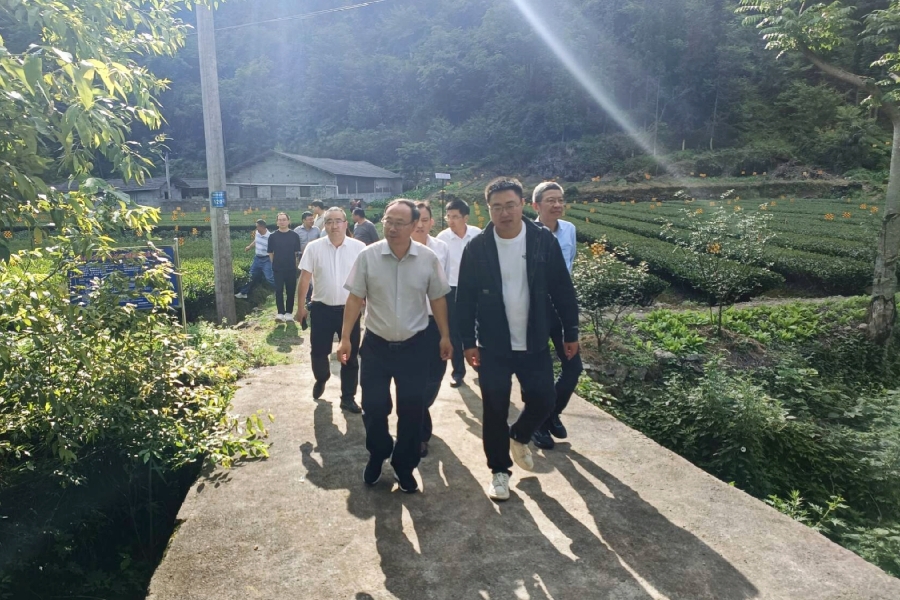 驻村第一书记谭超介绍了金龙坝村的红色文化、人文风貌、资源禀赋、产业发展情况。退休村支书冉茂文结合自己实干兴村的经历,讲述了该村的发展历程。村书记黄永河带调研组一行参观了有机茶园、特色民居、电商基地。