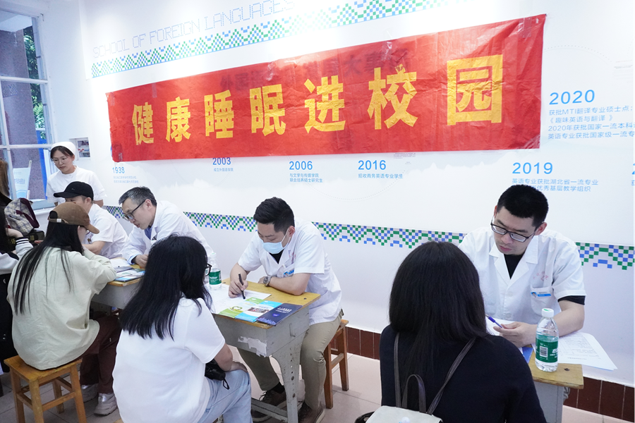 5月8日,学院联合恩施州优抚医院开展“健康睡眠进校园”活动,通过专家义诊与专题讲座的方式为学生送上科学睡眠“锦囊”。义诊现场,专家运用专业量表为百余名学生进行睡眠健康评估,针对性提出冥想放松、规避睡前陋习等建议。讲座中,曹宏波、张应等专家结合实验数据与临床案例,系统阐释睡眠与生理、认知及情绪调节的深层关联。活动累计发放《科学睡眠手册》120余册,帮助学生破解“失眠困局”,筑牢心理韧性根基。